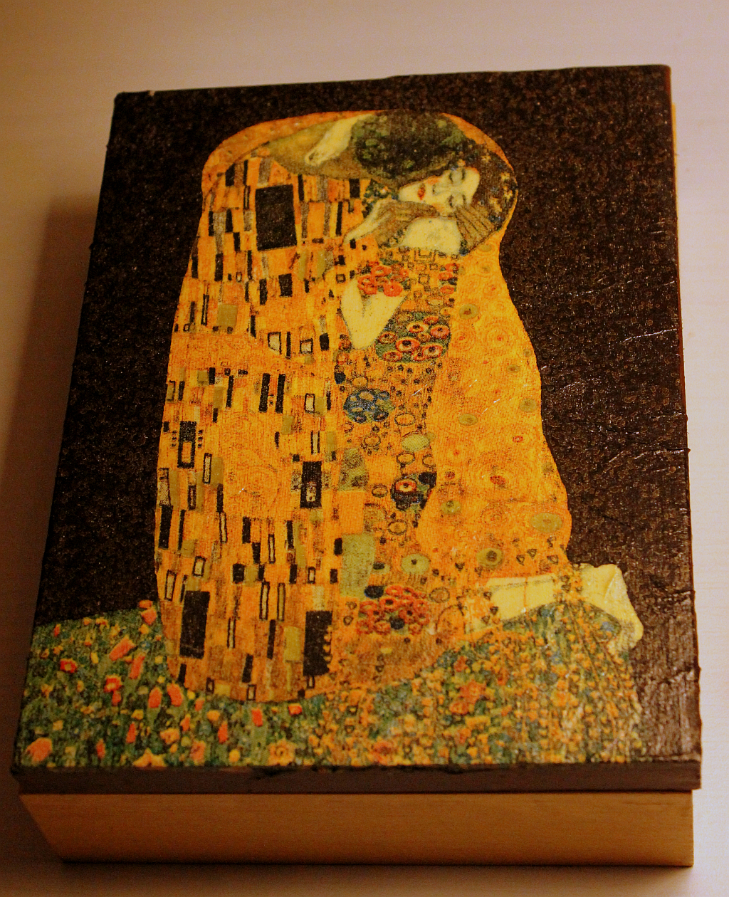 Decoupage jako technika artystyczna polega na naklejaniu wzoru z papieru i pokryciu go wieloma warstwami lakieru tak, aby wtopił się całkowicie i nie był wyczuwalny przy dotknięciu. Na drewnianych deseczkach, skrzyneczkach, czy pudełkach uzyskujemy wizualnie efekt podobny do malowania.